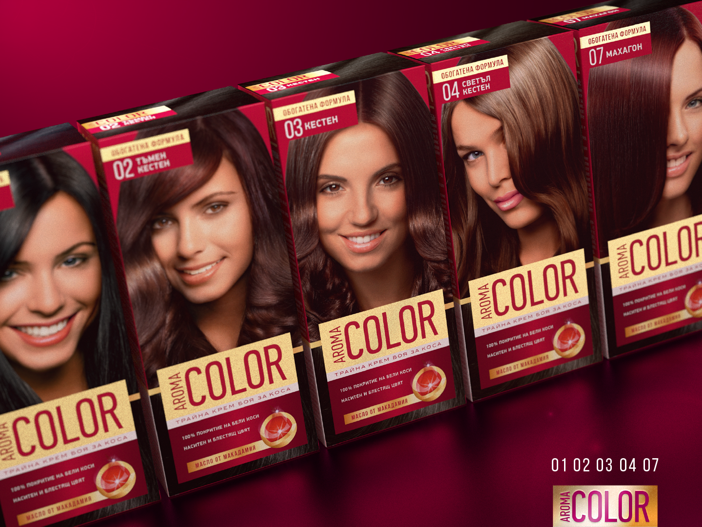 During my time in Bulgaria as a Art Director I was given the opportunity to work with Aroma Color, one of the oldest beauty product companies in the country. Together with the team we developed concept for their new TVC: Your color, your strength. It's an intense mix of deep and rich visuals to celebrate their hair dying products. What followed later was to retouch the faces of their existing packagings. Disciplines: TVC, Retouching, Art Direction Bulgaria 2015